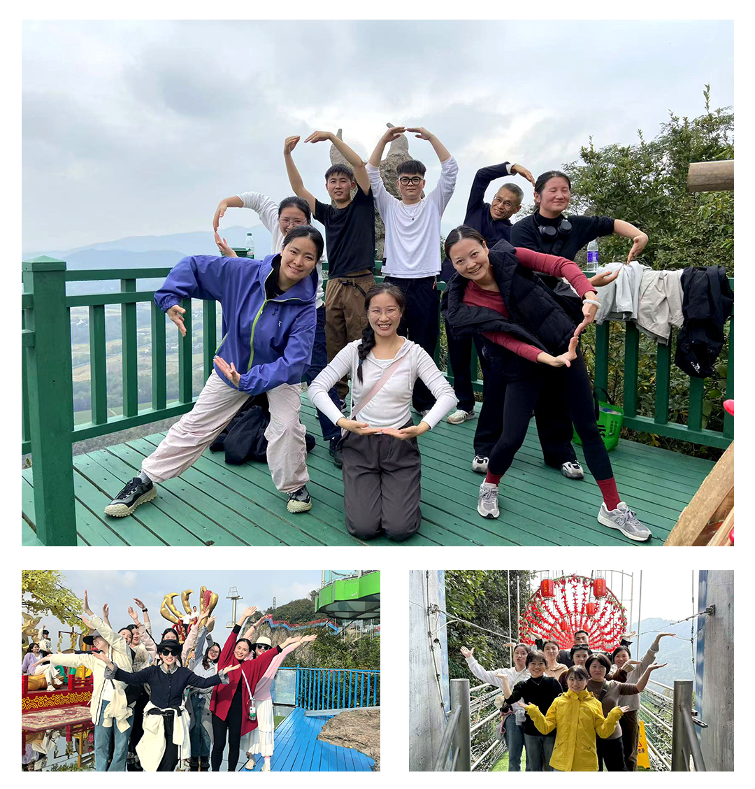 為了豐富旅途樂趣,增強團隊的合作精神與凝聚力,市場部精心策劃了趣味橫生的景點打卡游戲,小伙伴們積極參加,紛紛投入到打卡游戲中,旅途中成員間相互配合協(xié)助,各組成員依次在“牛石大平臺”“飛龍玻璃橋”“天空之境”三處著名的景點前打卡拍照,擺出不同難度的拍照動作。